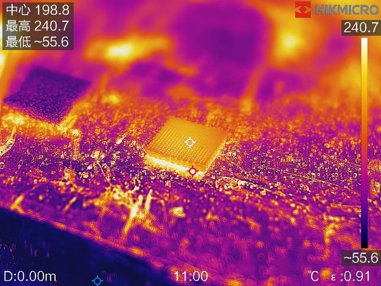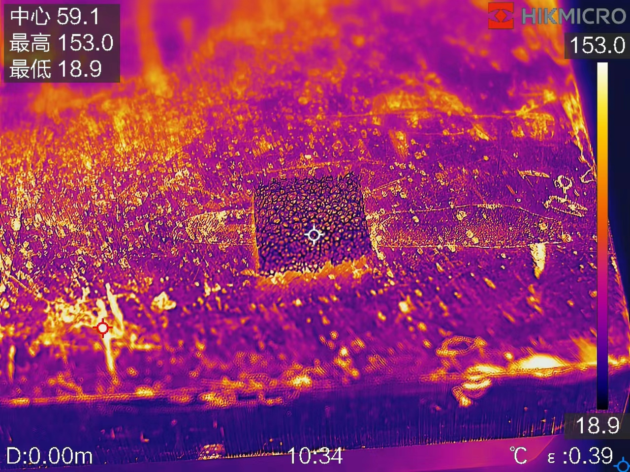 實驗結果清晰展示了低發射率材料的溫度分布。紅外熱成像儀能夠捕捉到微小區域的溫度變化,為材料表面溫度提供了高分辨率的圖像。