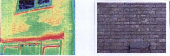圖3、墻體裂縫紅外熱像圖。*右邊的為中間建筑物的可見(jiàn)光圖像。