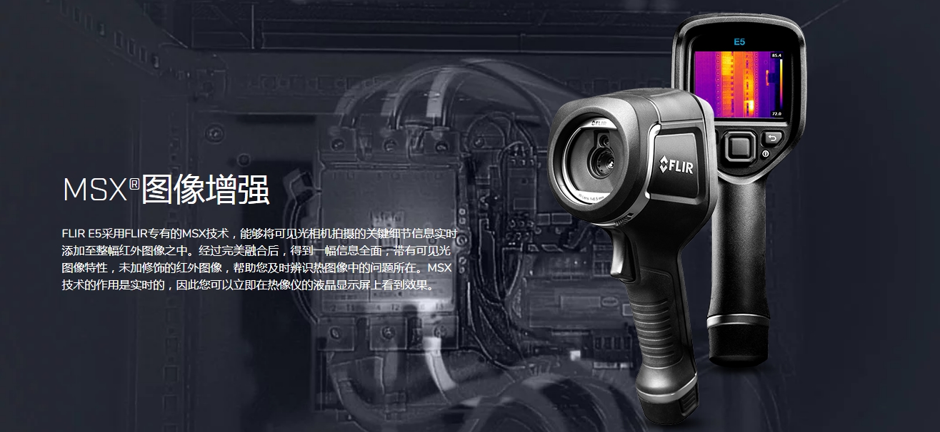 FLIR E8采用FLIR專有的MSX技術,能夠將可見光相機拍攝的關鍵細節信息實時添加至整幅紅外圖像之中。經過融合后,得到一幅信息圖,帶有可見光圖像特性,未加修飾的紅外圖像,幫助您及時辨識熱圖像中的問題所在。MSX技術的作用是實時的,因此您可以立即在熱像儀的液晶顯示屏上看到效果。