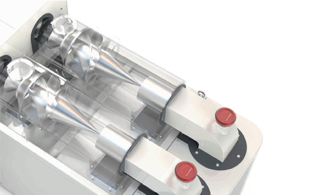 Gyro Air氣陀螺木工集塵器具有不同于傳統(tǒng)集塵器的工作原理,在設(shè)計上海威提出了“軸向離心分離技術(shù)”:氣陀螺技術(shù)。氣陀螺技術(shù)將水平流動的粉塵