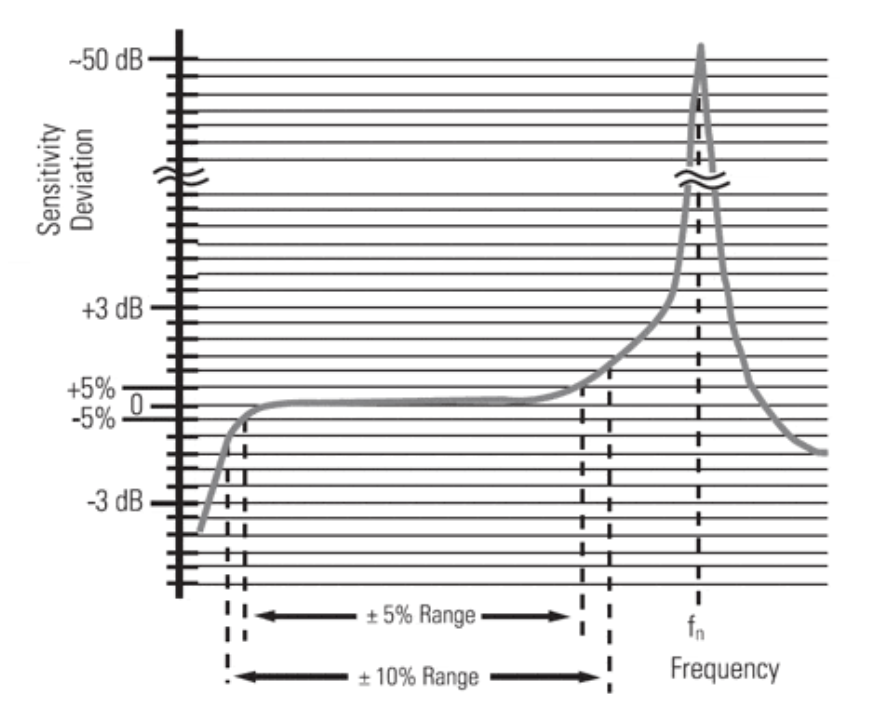 通常傳感器靈敏度偏差低于5%范圍內(nèi)使用是可以接受的。而此時的高頻測量上限一般在接近傳感器固有頻率的20%左右。高頻響應(yīng)可能受激勵電流、電纜長度和電纜電容的限制。