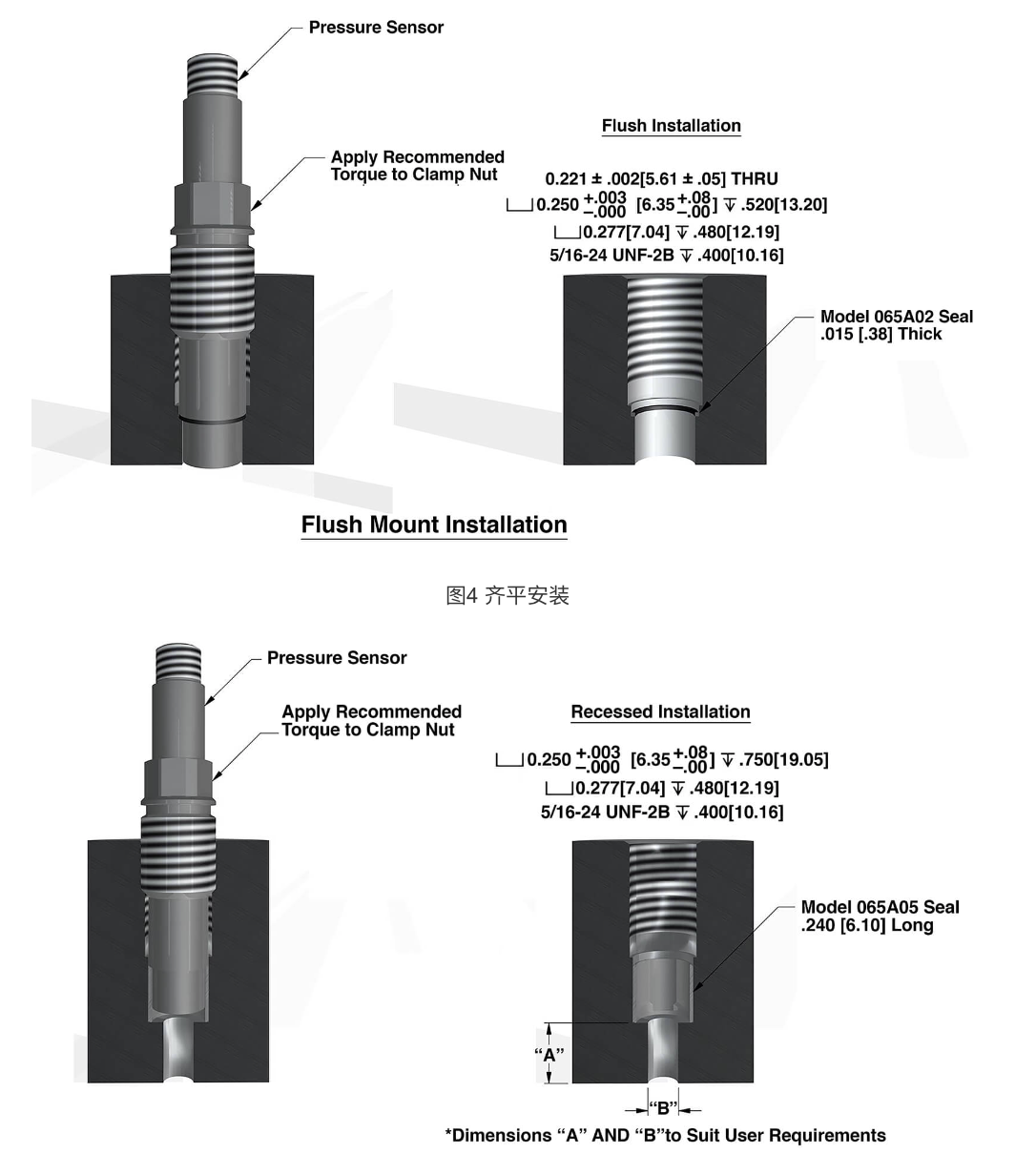 壓力傳感器的精密安裝對于**測試是至關(guān)重要的。每次安裝前請確認傳感器說明書中的安裝尺寸圖,當(dāng)您有疑問時,請聯(lián)系PCB?工程師取得詳細的安裝指南。使用精密的機加工設(shè)備來安裝螺紋孔,并且使用推薦的安裝扭矩。請使用PCB?傳感器提供的安裝硬件,我們還提供不同標準的螺紋適配器來簡化一些傳感器的安裝。